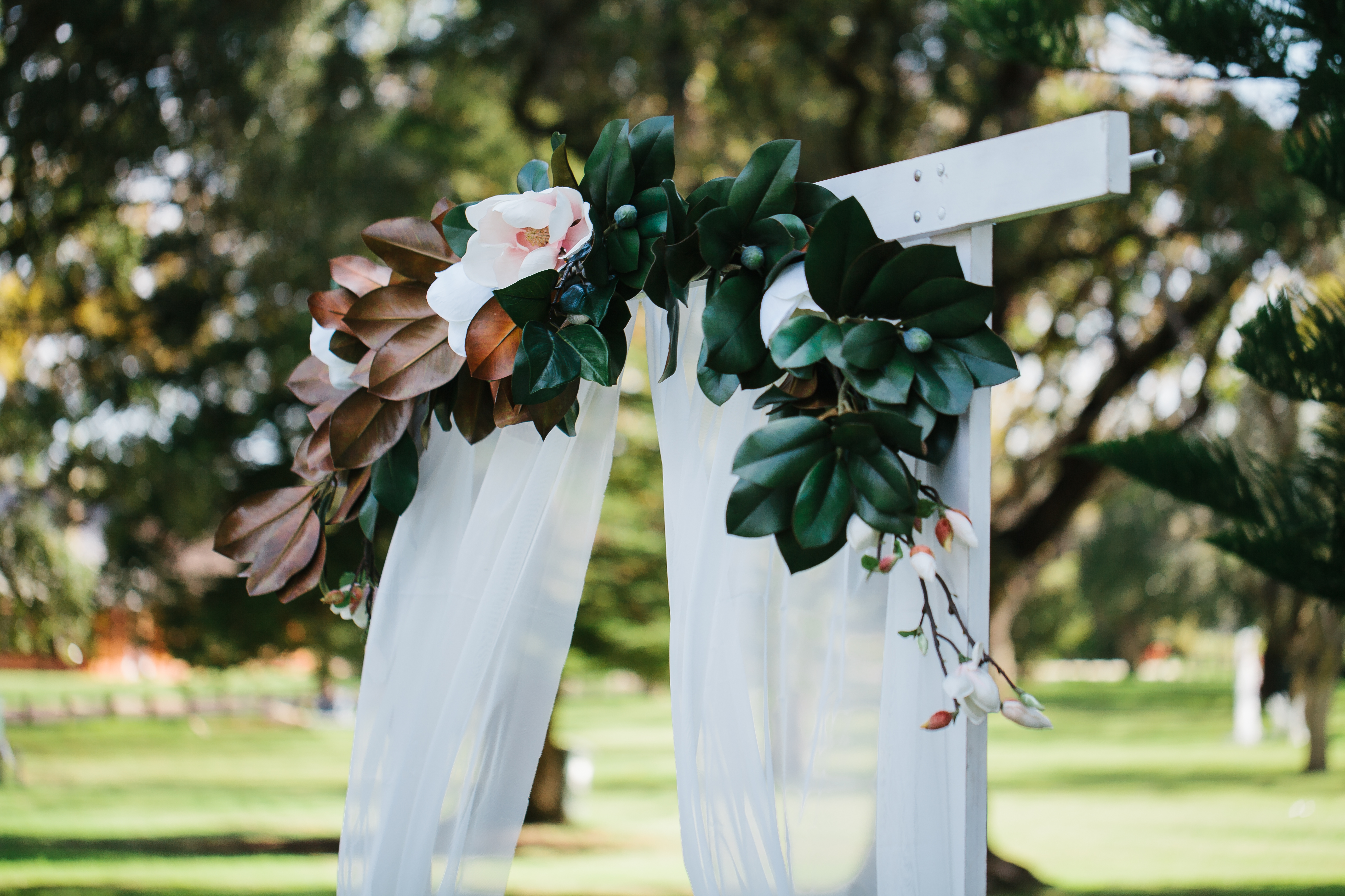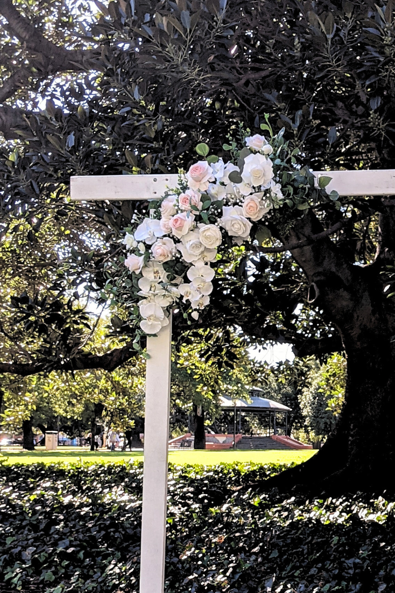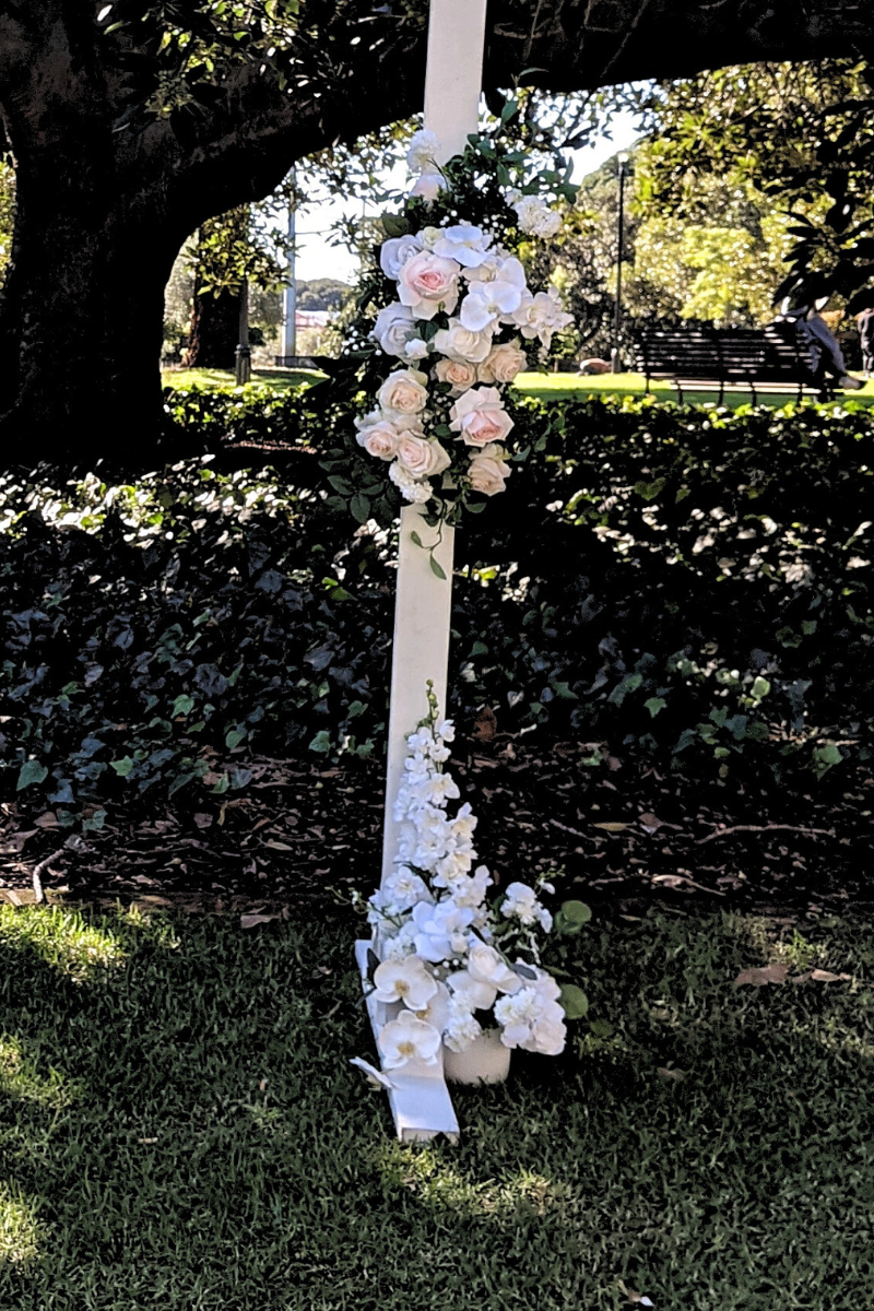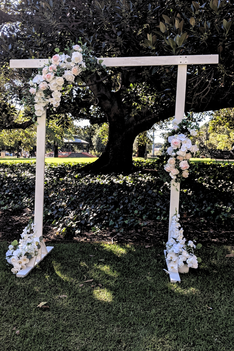 - A Gorgeous White Wooden Arbour with Handmade Premium Silk Floral Arrangements