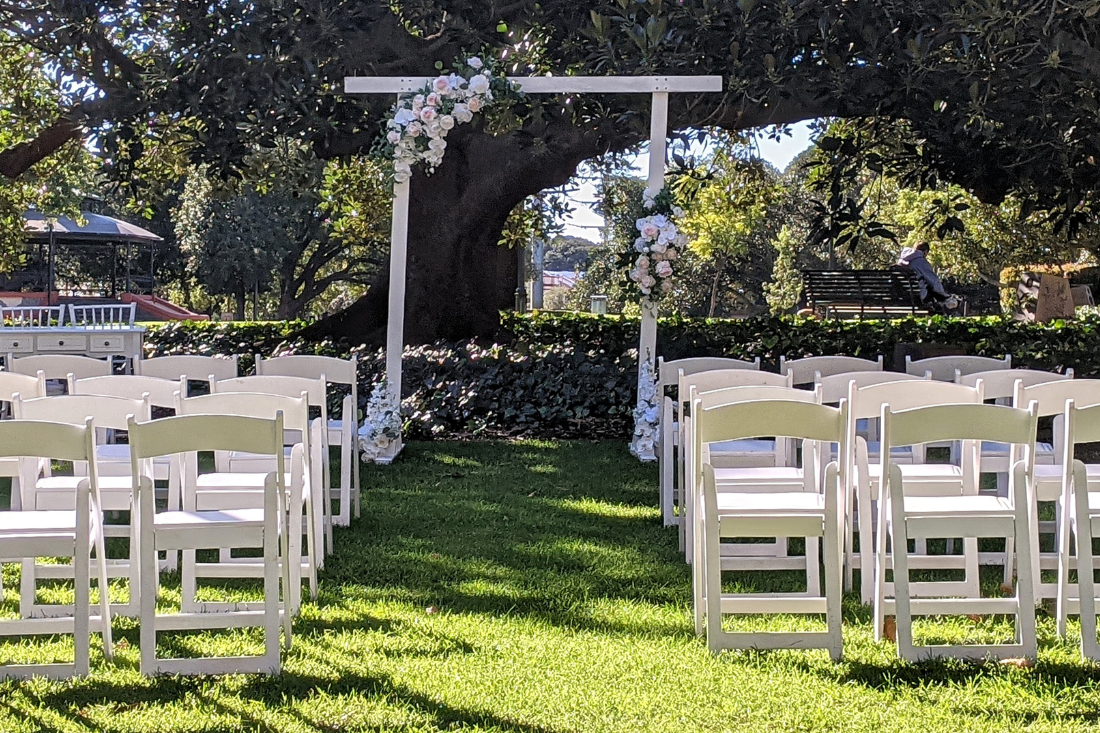 All ceremony packages come as a complete set, including ceremony chairs, wedding arbour, signing table, flowers, decorations and finer details.