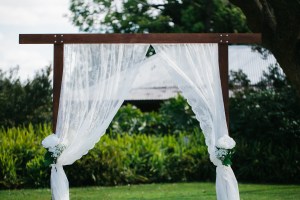 The Soho Vintage Wedding Package includes 24 Bella Ceremony Chairs, Wooden Arbour with White Lace Curtains, 7 meter White Aisle Carpet, 2 Tiffany Signing Chairs, a Classic French Writing Desk for your signing table, Aisle Decorations – Babies Breath & Peonies in mason jars.